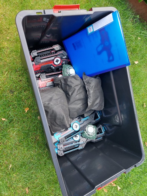 De laserguns zijn volledig oplaadbaar en gaan urenlang mee op één lading. Opladers worden meegeleverd.